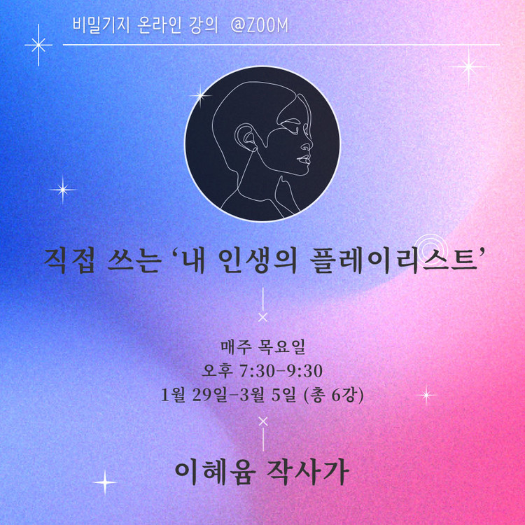 - 이론을 곁들이되 재미와 참여 위주의 수업이며, 나만 알기 아까운 ‘그 음악’을 꺼내 놓을 열린 마음과 작사에 대한 호기심이 있다면 준비는 충분합니다.